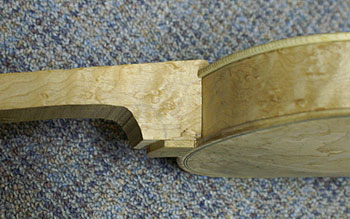 An exact 82.5 degree angle had to be cut and fit into the mortise to get the exact fingerboard angle.
