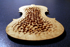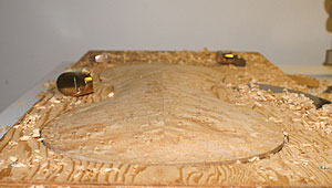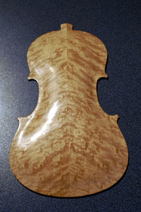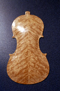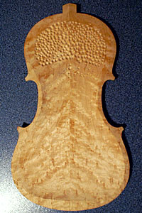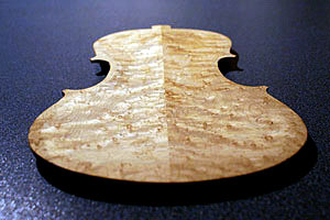 Carving the back It started out as a beautiful 5/8" thick piece of Birds Eye Maple.