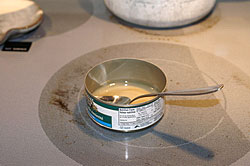 Heating up the hide glue to join the plates together. The glue should get hot enough to have an oily consistency between the fingers, but not boil.